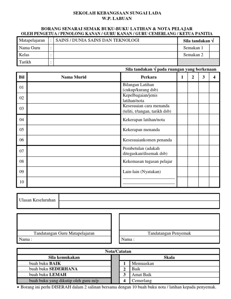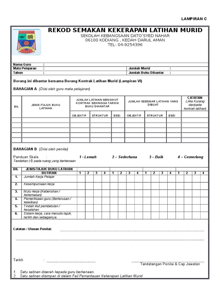 Jadual Semakan Buku Latihan Murid Docx Docx