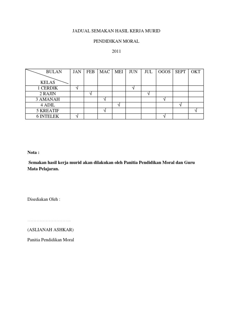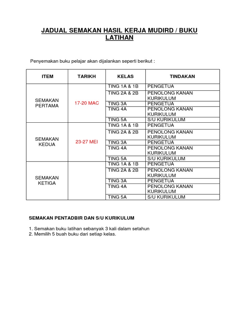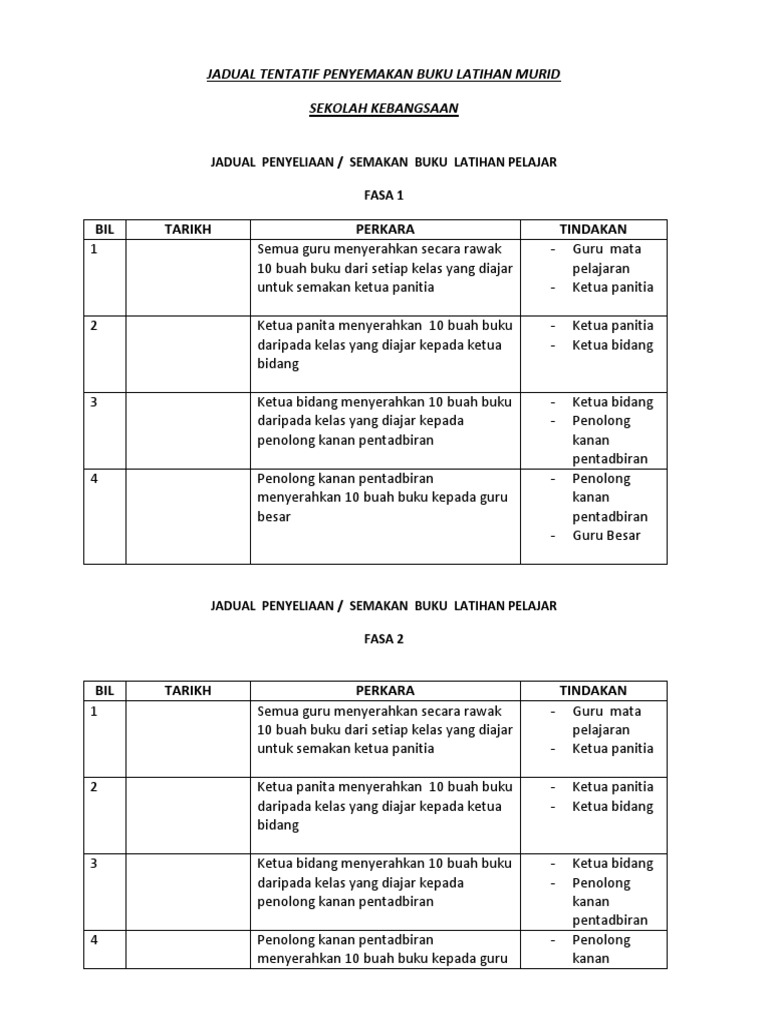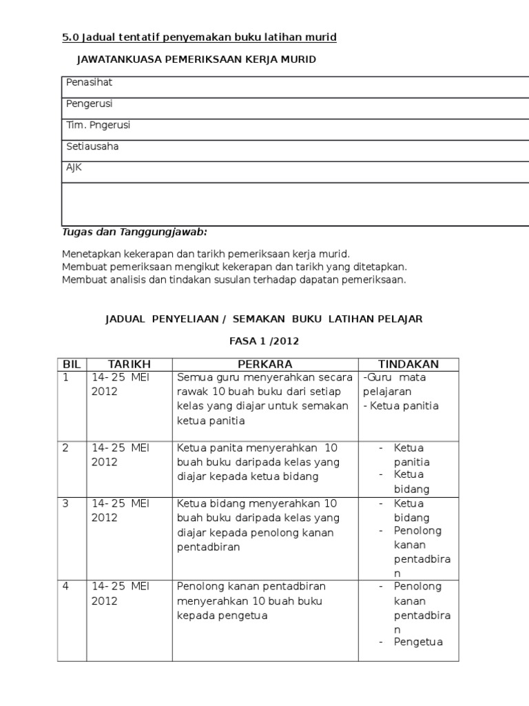 5 0 Jadual Tentatif Penyemakan Buku Latihan Murid Tugas Dan Tanggungjawab