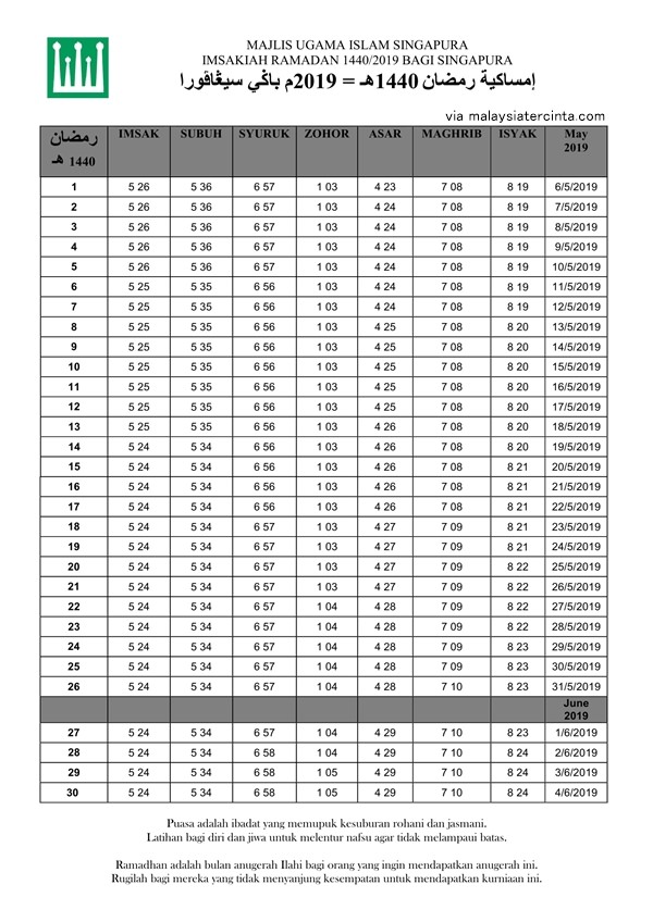Jadual Waktu Stam 2018