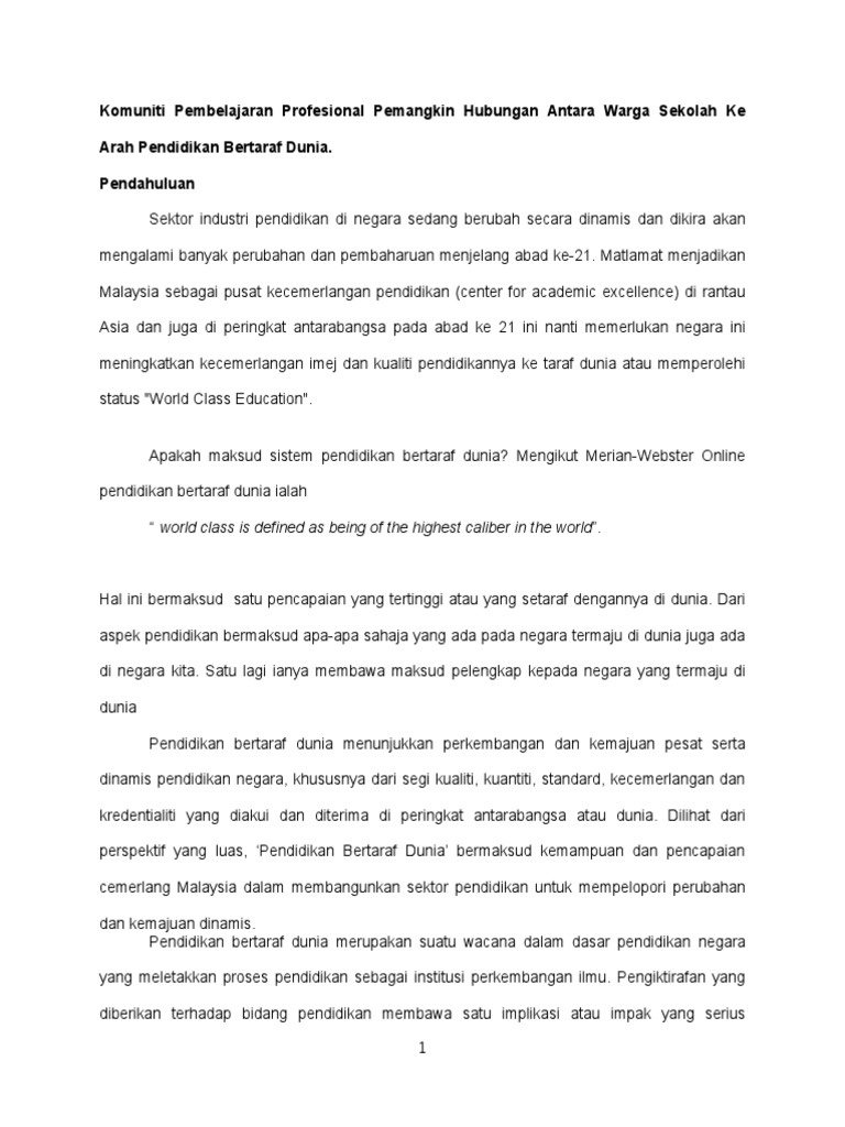 Pembelajaran Profesional Membentuk Hubungan Antara Warga Sekolah Ke Arah Pendidikan Bertaraf Dunia
