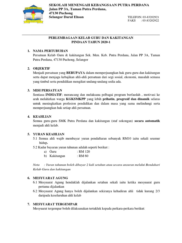 Perlembagaan Kelab Guru Dan Kakitangan 2020