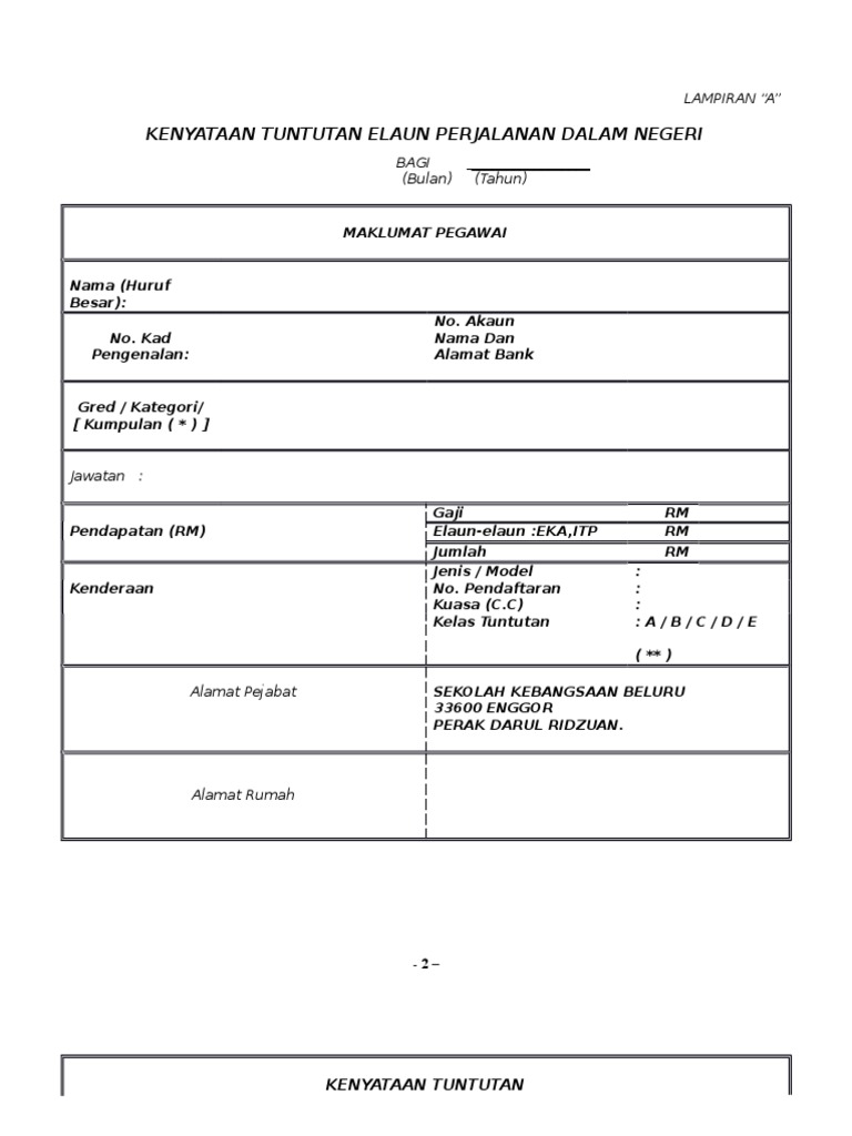 Doc Borang Tuntutan Elaun Perjalanan Dalam Negeri Samuel Louis Academia Edu