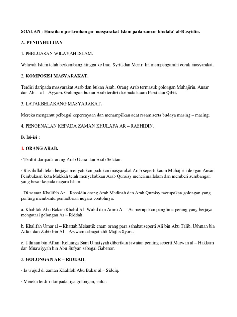 Perkembangan Masyarakat Islam Pada Zaman Khulafa Al Rasyidin