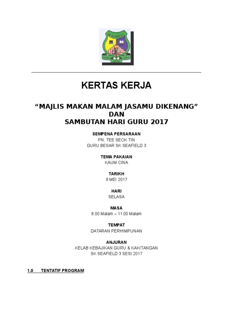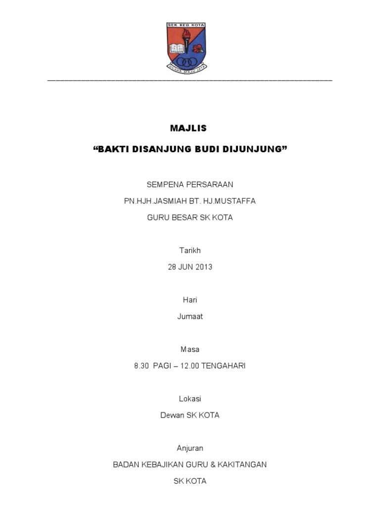 Kertas Kerja Majlis Persaraan Guru Smk Seri Setia 2019 1 0 Pengenalan