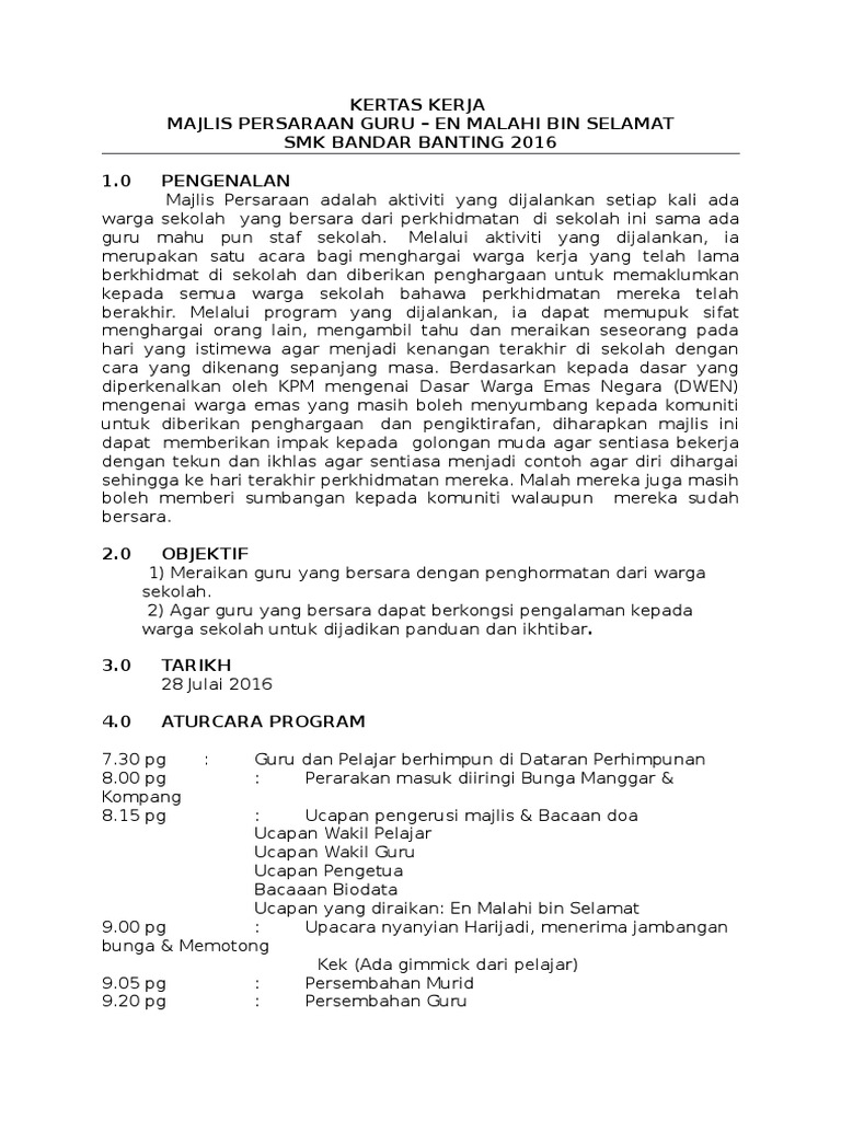 Kertas Kerja Majlis Persaraan Pdf Document