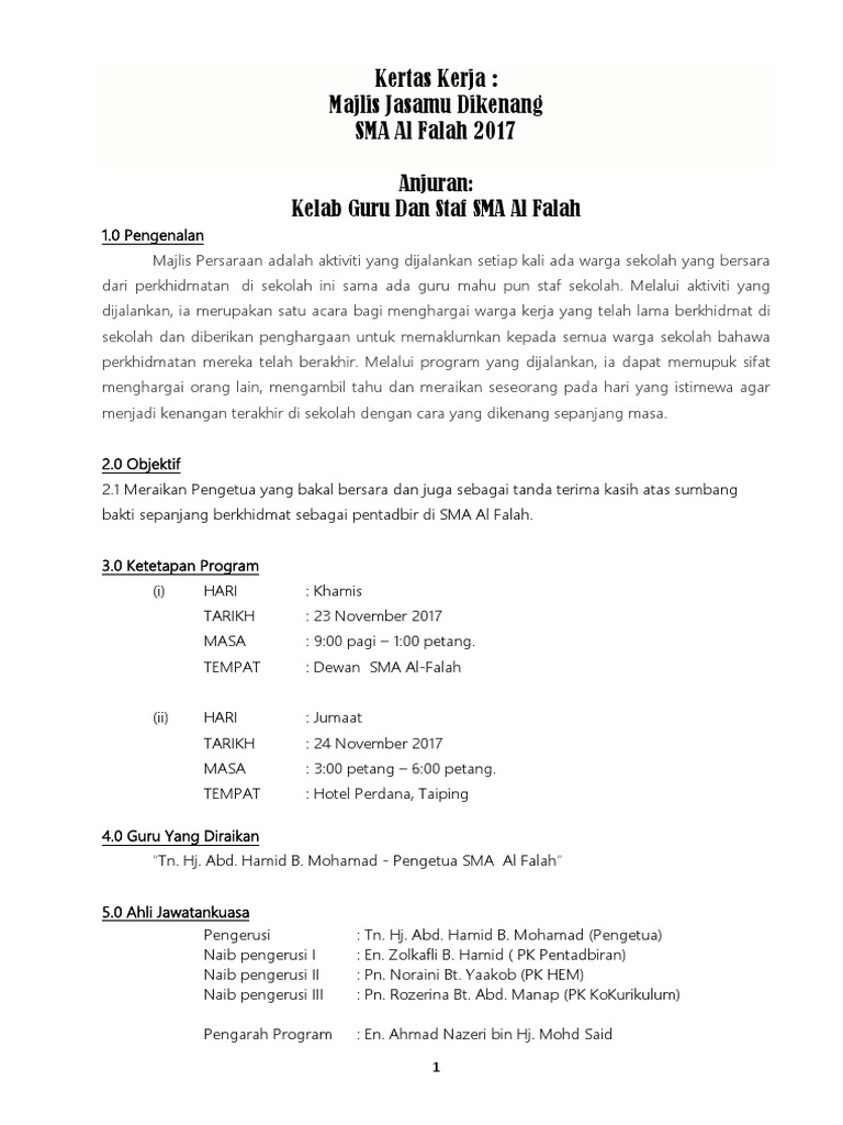 Kertas Kerja Majlis Persaraan Pages 1 5 Text Version Anyflip