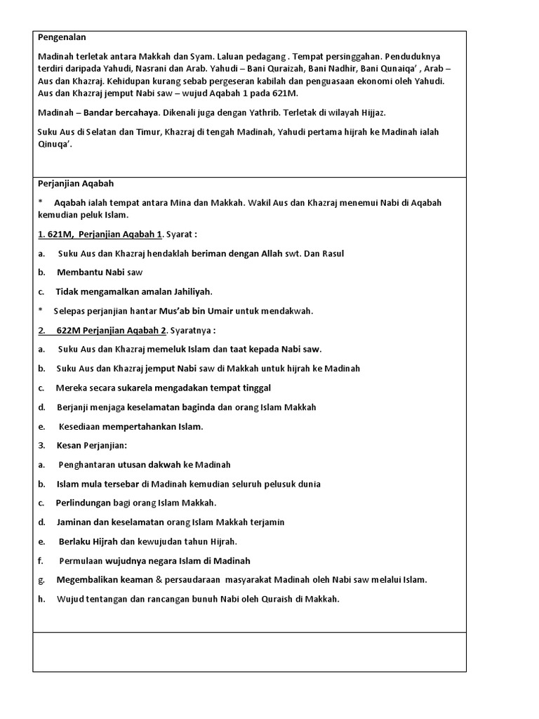 Pdf Nota Siri 3 Sirah Nabawiyah Hijrah Nabi Ke Madinah Hingga Peristiwa Kewafatan Baginda Fatrah Madaniyah Syafiq Attauhidi Academia Edu