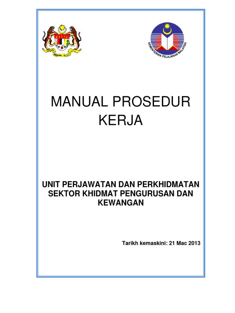 Manual Prosedur Kerja Unit Perjawatan Dan Perkhidmatan Sektor Khidmat Pengurusan Dan Kewangan