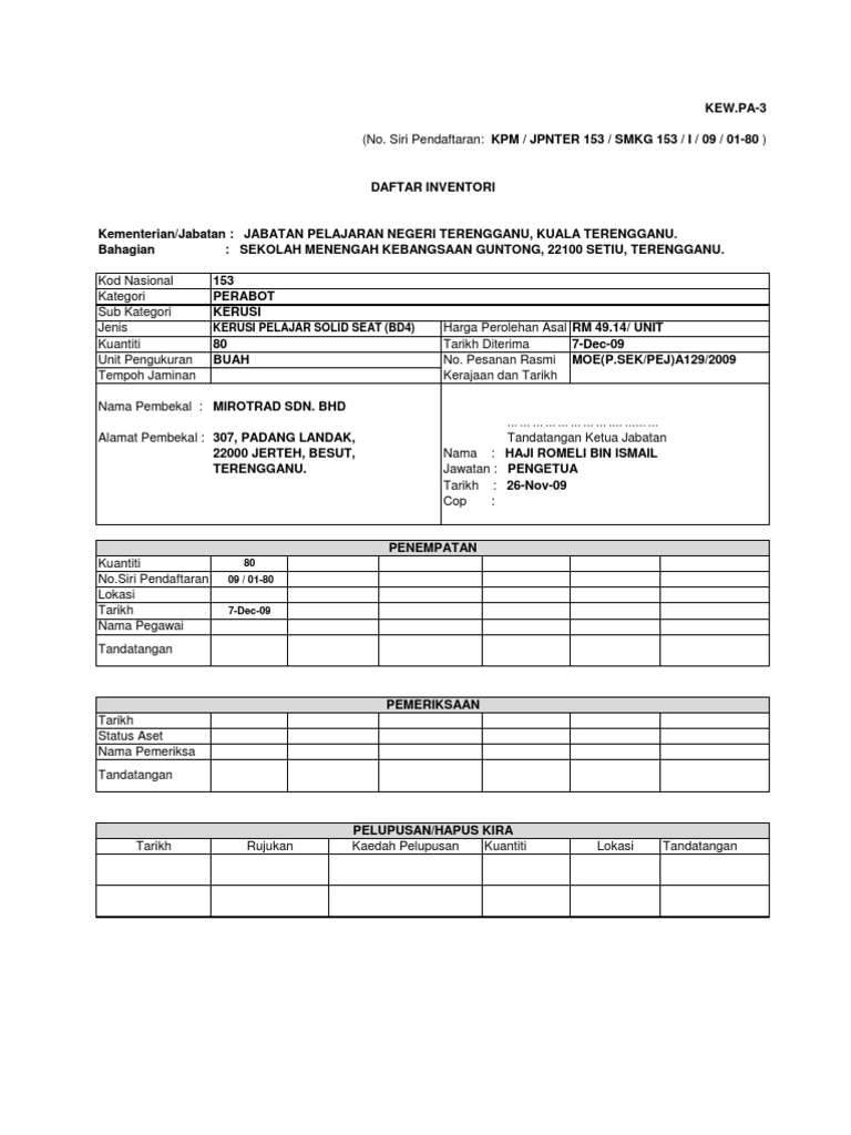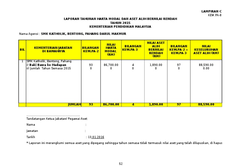 8 Kew Pa 8laporan Tahunan Harta Modal Inventori Doc Kew Pa 8 Laporan Tahunan Aset Tetap Dan Inventori Bagi Tahun U2026 U2026 U2026 Kementerian Bil Nama Aset Course Hero