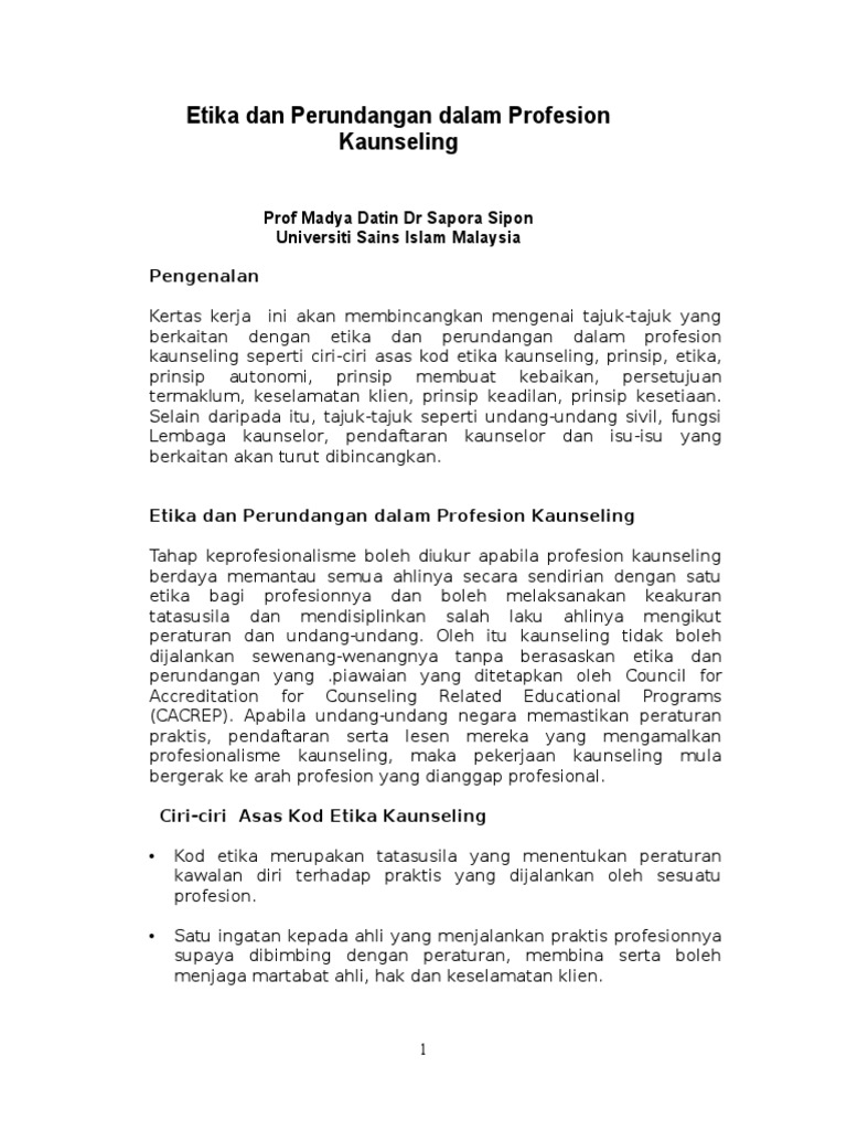 Pdf Pengenalan Kepada Bidang Kaunseling Etika Syifaa Zul Academia Edu