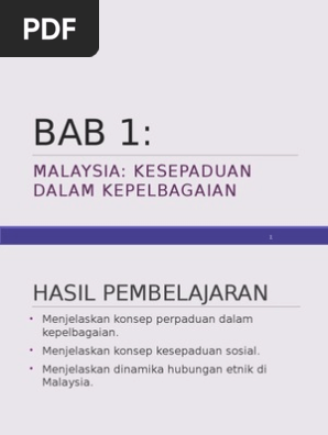 Bab 1 Malaysia Dalam Kepelbagaian6sept12 Hasil Pembelajaran Menjelaskan Konsep Perpaduan Dalam Kepelbagaian Menjelaskan Konsep Kesepaduan Sosial Course Hero