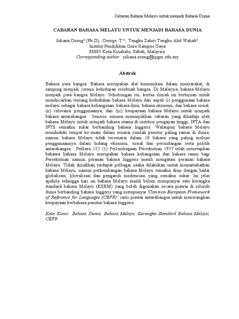 Pdf Memperkukuh Peranan Bahasa Melayu Dalam Dunia Teknologi