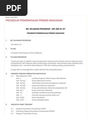 Sop Pemeriksaan Premis Makanan Doc