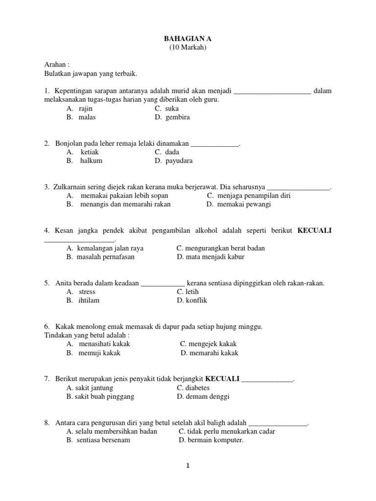 Soalan Pendidikan Kesihatan Tahun 5 Persoalan Q