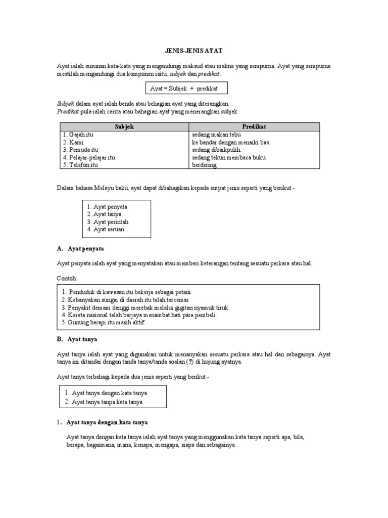 Nota Dan Latihan Tatabahasa Jenis Jenis Ayat