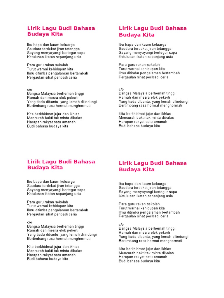 Lirik Lagu Budi Bahasa Budaya Kita Doc Document