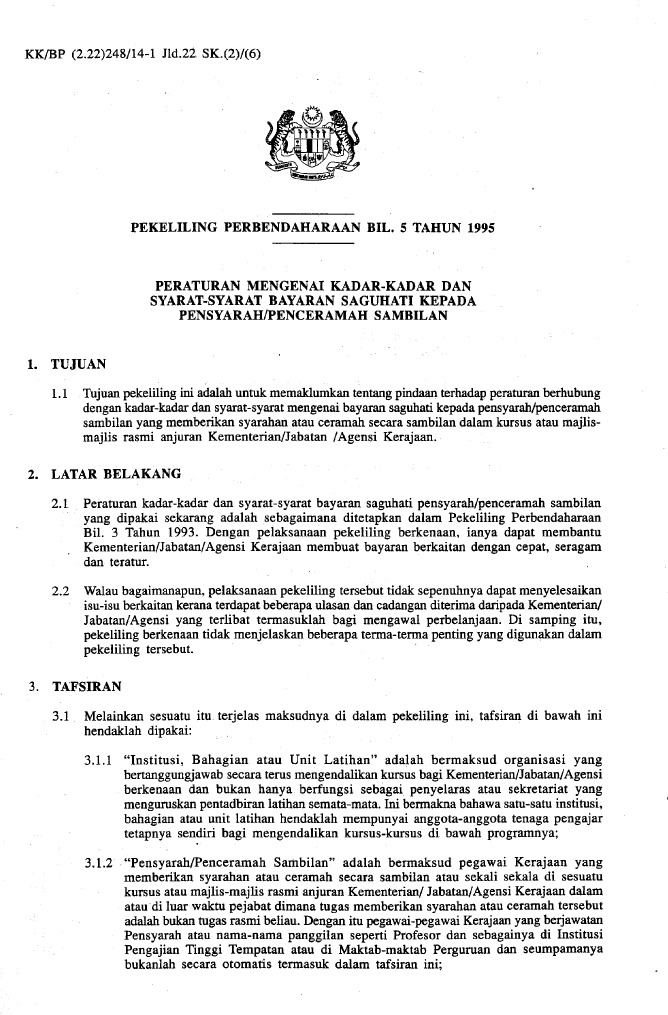 Pekeliling Perbendaharaan Bil 5 Tahun 1995