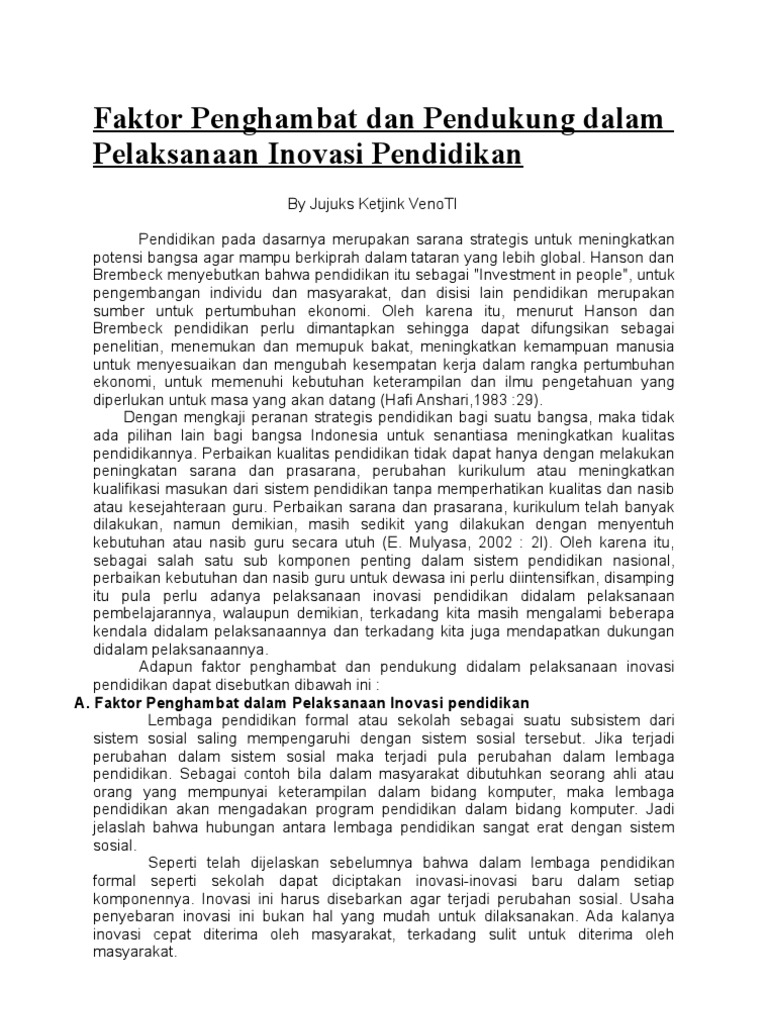 Faktor Penghambat Dan Pendukung Dalam Pelaksanaan Inovasi Pendidikan