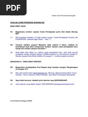 Soalan Lazim Pengisian Borang Be Butir Pembayar Cukai