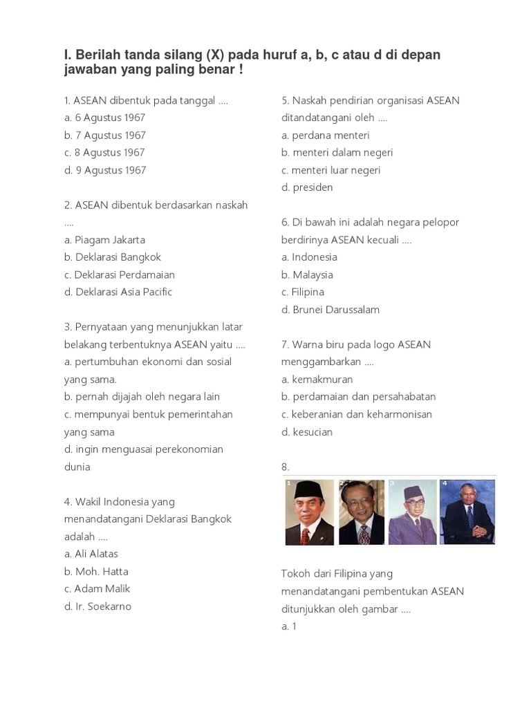 1 Asean Adalah Contoh Kerja Sama 2 Asean Terbentuk Melalui Deklarasi Bangkok Pada Tanggal Brainly Co Id
