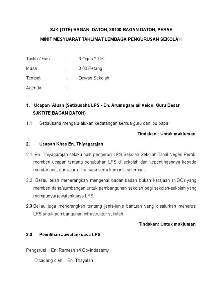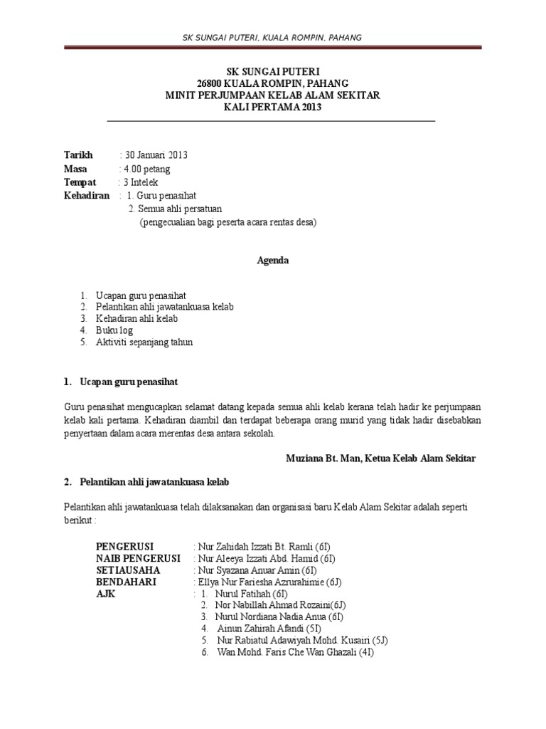 Doc Contoh Minit Mesyuarat Ajk Persatuan Bahasa Melayu Etiesha Rais Academia Edu