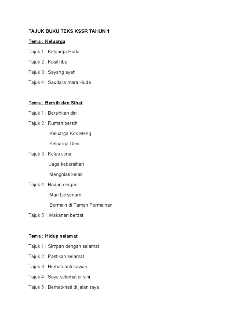 Tajuk Buku Teks Kssr Tahun 1