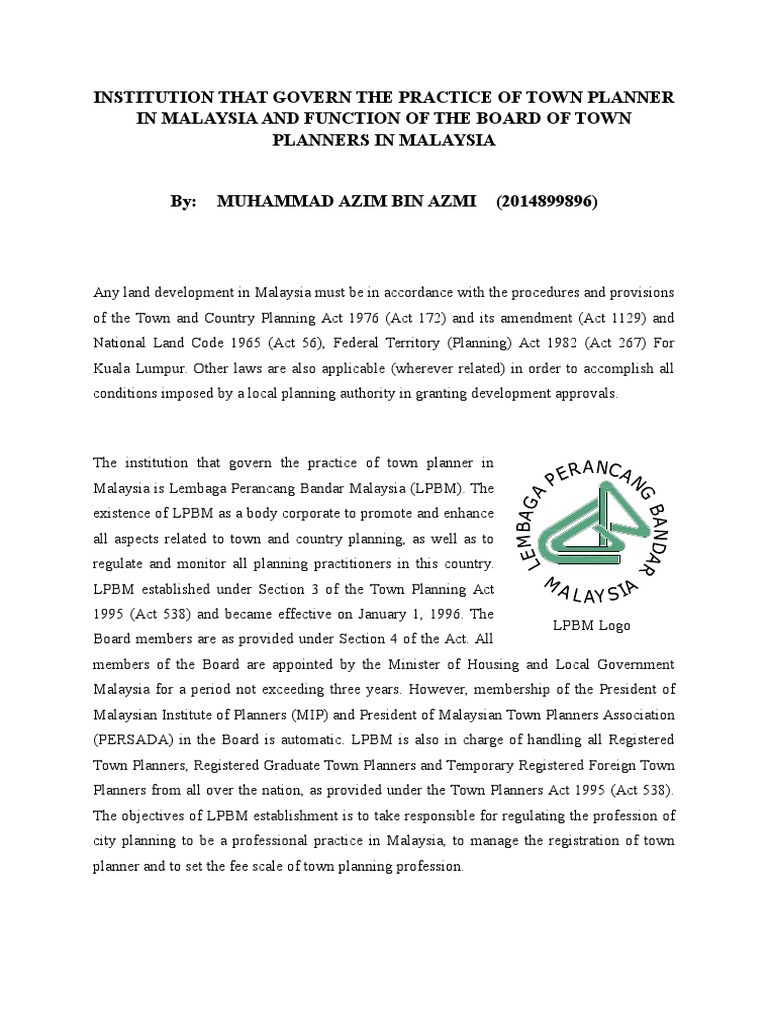 Institution That Govern The Practice Of Town Planner In Malaysia And Function Of The Board Of Town Planners In Malaysia Malaysia Profession