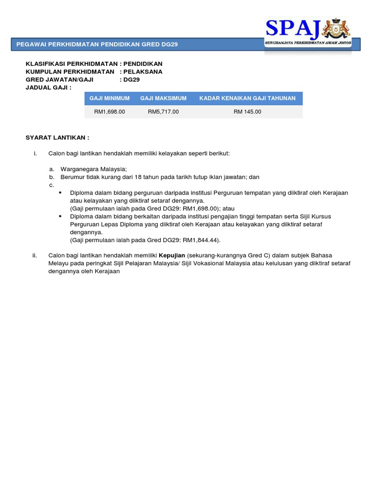 Gaji Kelayakan Tugas Pegawai Perkhidmatan Pendidikan Dg29 Dg41 Spa