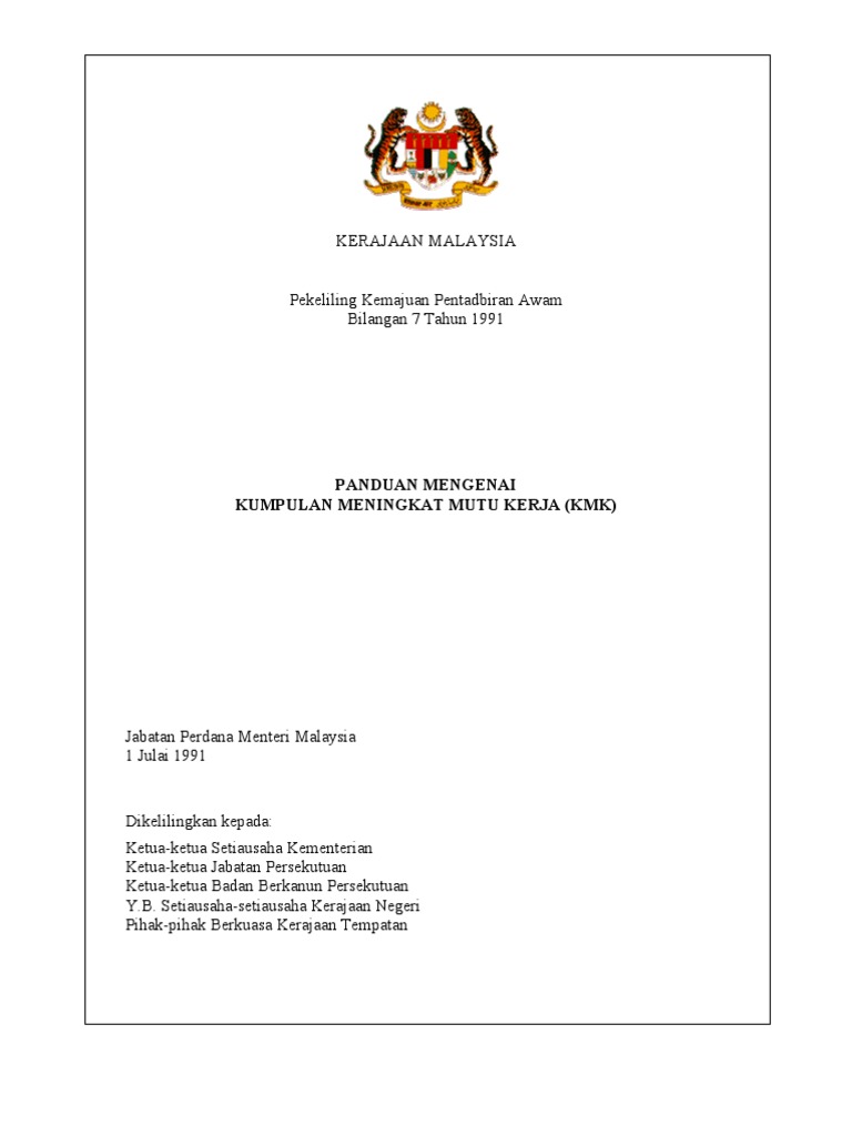 Di keluarkan oleh agensi pusat umpamanya epu mampu dan icu jabatan pekhidmatan awam jpa pekeliling perkhidmatan jabatan perbendaharaan pek. Pekeliling kemajuan pentadbiran awam 1 oleh norizan bin ahmad. Pkpa bil 01 1992 pekeliling panduan pengurusan kualiti menyeluruh tqm bagi perkhidmatan awam april 26 2018 jabatan perdana menteri pekeliling kemajuan pentadbiran awam tahun 1992 spi bil 07 1992 pekeliling pengharaman pensil berbentuk alat suntikan syringe di sekolah sekolah. Pekeliling kemajuan pentadbiran awam bilangan 8 tahun 1991 panduan mengenai manual prosedur kerja dan fail meja jabatan perdana menteri malaysia 1 julai 1991 dikelilingkan kepada.
