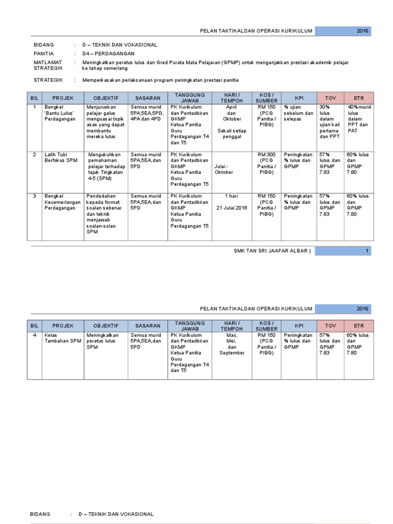 Pelan Taktikal Dan Operasi Perdagangan 2016