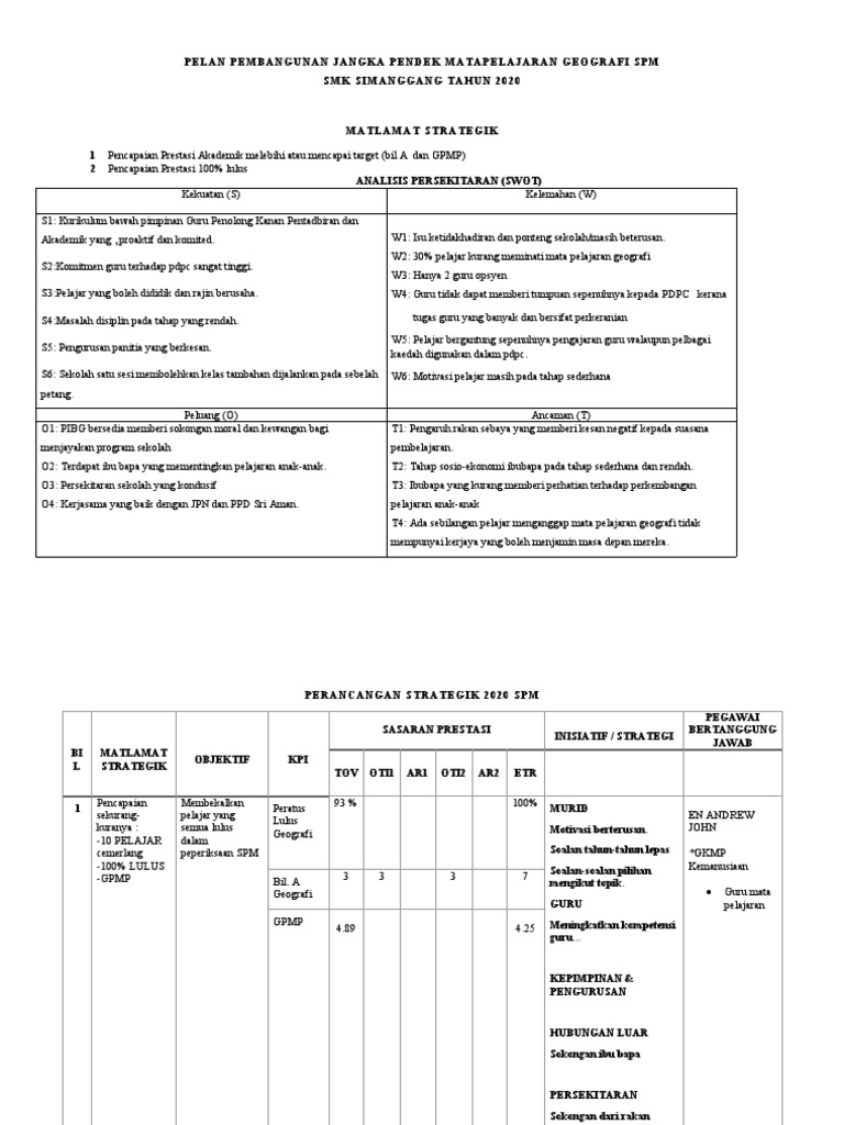 Perancangan Strategik Panitia Geografi 2020 Docx