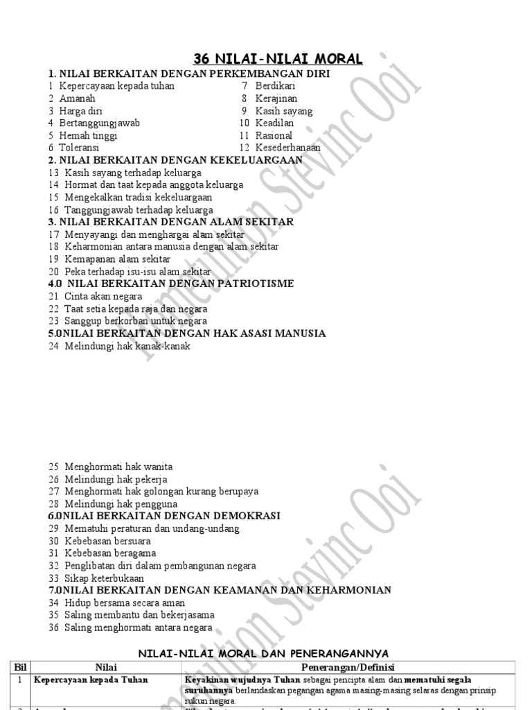 36 Nilai Nilai Moral 1 Nilai Berkaitan Dengan Perkembangan Diri