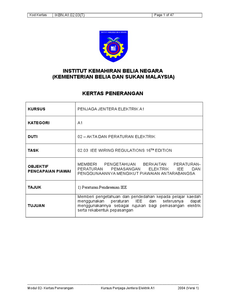Kursus Elektrik Ikbn Temuduga Calon Penjaga Jentera Elektrik Sesi 2 2008