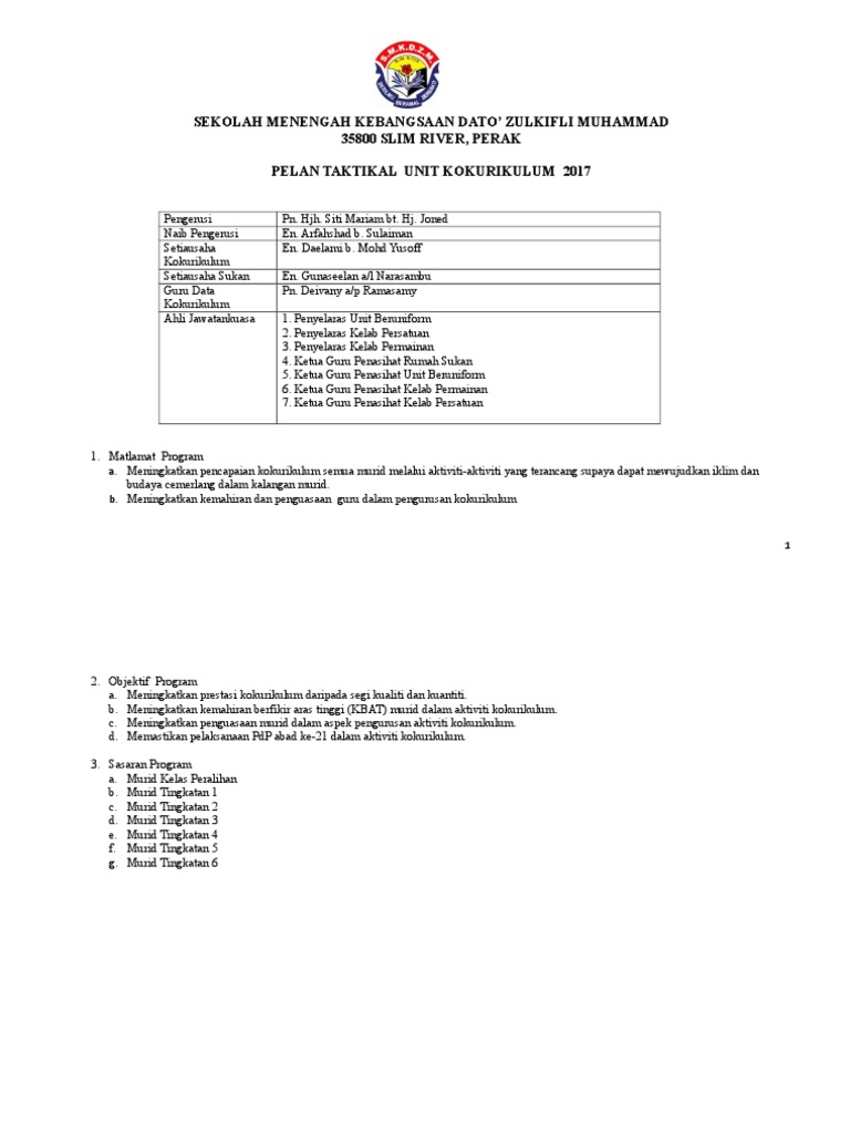 Pelan Strategik Kokurikulum 2017 Terkini 1