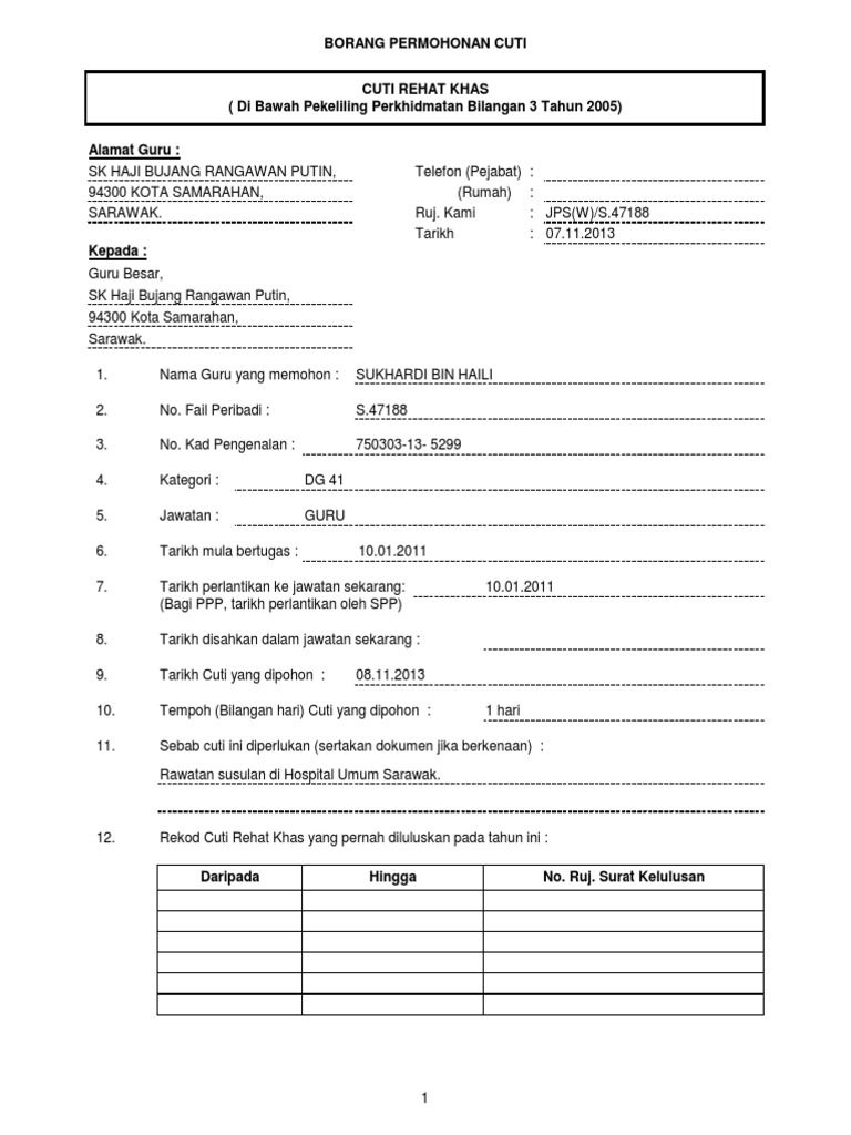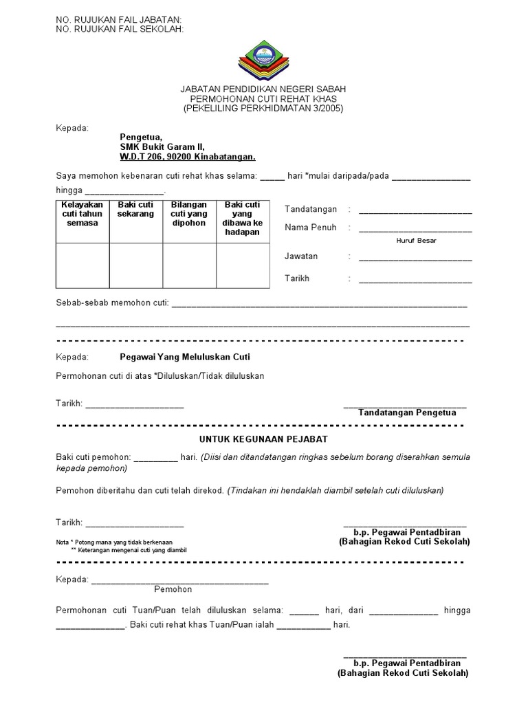 Borang Cuti Rehat Khas Sk Punan