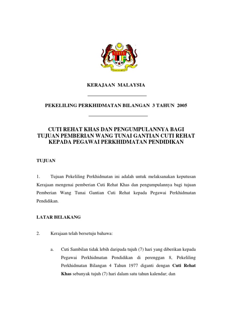 Cuti Rehat Khas Crk Guru Pekeliling Pendidik2u
