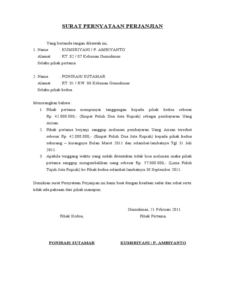 Surat Pernyataan Perjanjian