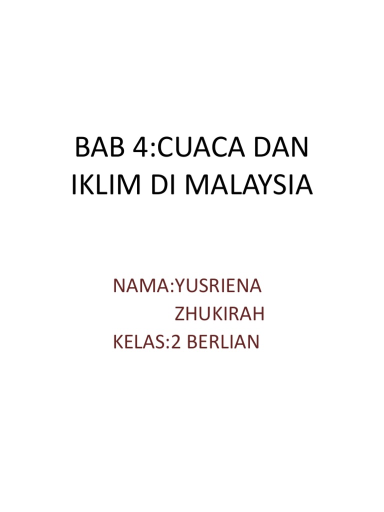 Bab 4 Cuaca Dan Iklim Di Malaysia Nama Yusriena Zhukirah Kelas 2 Berlian