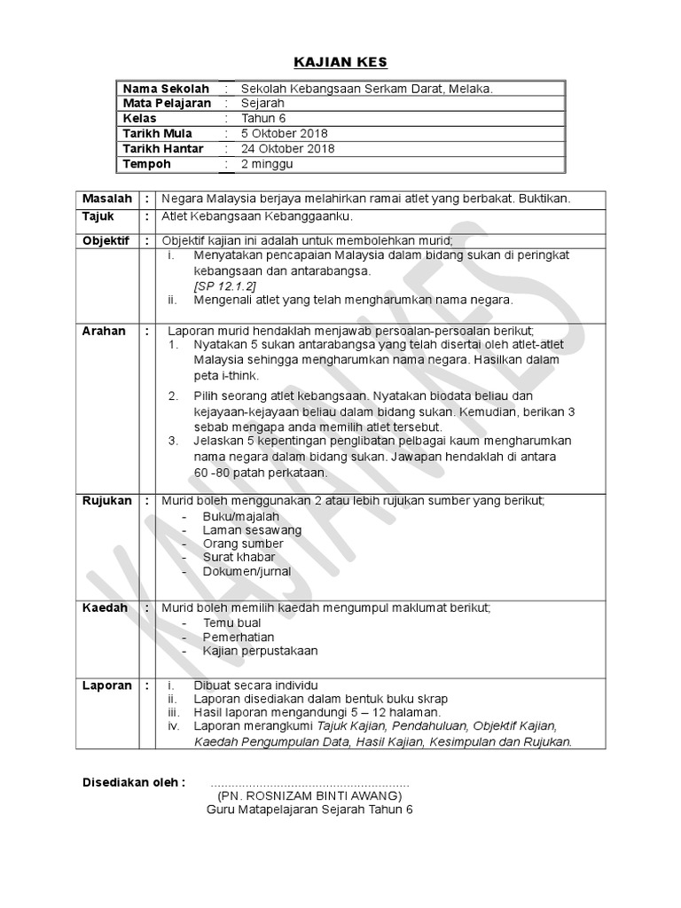 Kerja Kursus Sejarah Tahun 6