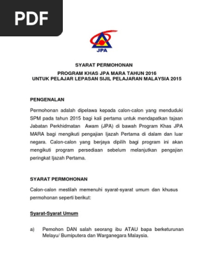 A Syarat Permohonan Maklumat Program Khas Jpa Mara 2016 Pdf