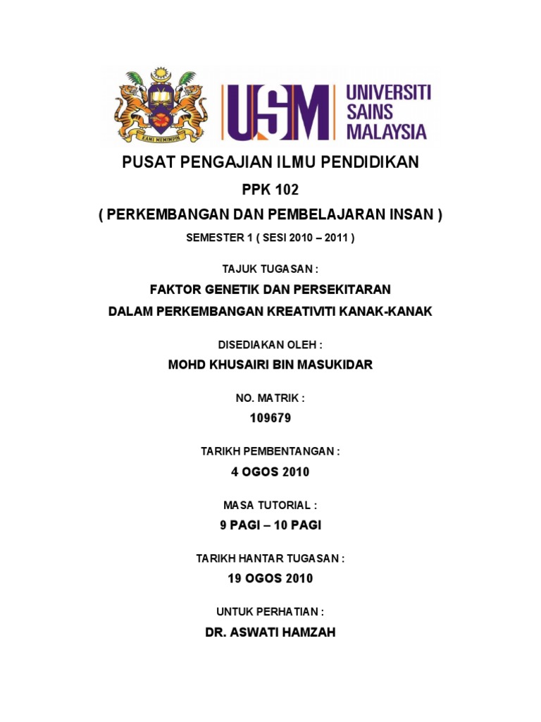 Faktor Genetik Dan Persekitaran Mempengaruhi Perkembangan Kreativiti Kanak Kanak
