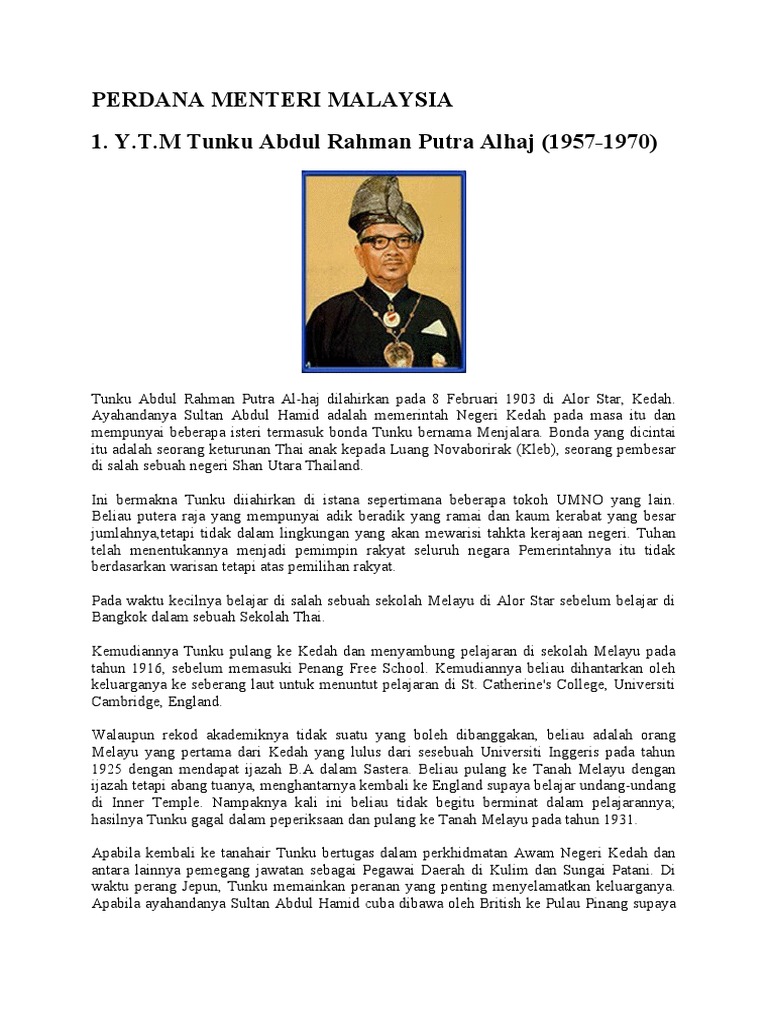 Biodata Perdana Menteri Malaysia Pertama 13 Tahun