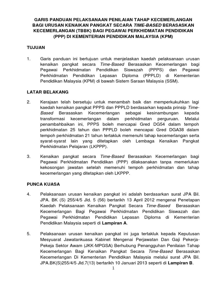Garis Panduan Kenaikan Pangkat Secara Time Base 2013 Pdf Document