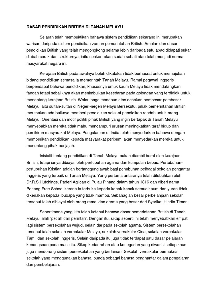 215271144 Dasar Pendidikan British Di Tanah Melayu